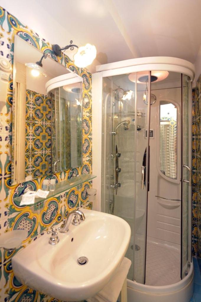 Camera Quadrupla. Camere affacciate sul mare e dotate di aria condizionata e oggetti di artigianato locale, come le ceramiche di Vietri. Inoltre dispongono di TV LCD e bagno privato condi cortesia e asciugacapelli. Il WiFi è gratuito. ;