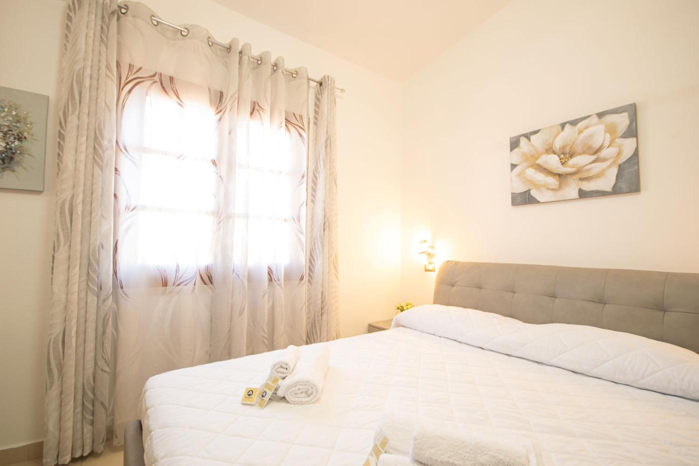 Questo appartamento con aria condizionata comprende 2 camere da letto, un soggiorno, una cucina con utensili più frigorifero, e 1 bagno con bidet edi cortesia. Presso questo appartamento troverete asciugamani e lenzuola a disposizione.