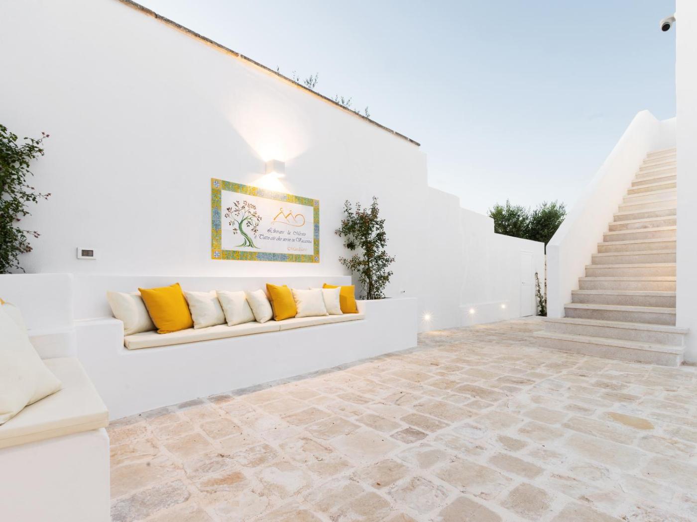 Trullo Luxury. The spacious double room offers air conditioning, a private entrance, as well as a private bathroom boasting a walk-in shower and a bidet. The double room provides a flat-screen TV, a minibar, a tea and coffee maker, a seating area as well as garden views. The unit has 2 beds. ;