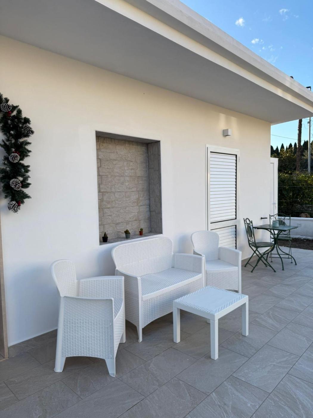 Camera Matrimoniale. Questa camera matrimoniale presenta l’aria condizionata, un ingresso indipendente, una terrazza con vista sul giardino e 1 bagno privato con doccia.