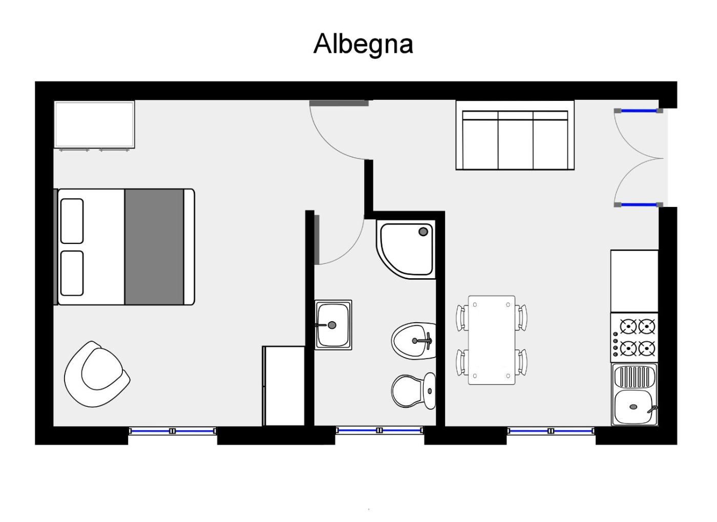 Appartamento con 1 Camera da Letto e Terrazza - Albegna. Offre la vista panoramica e un patio arredato.