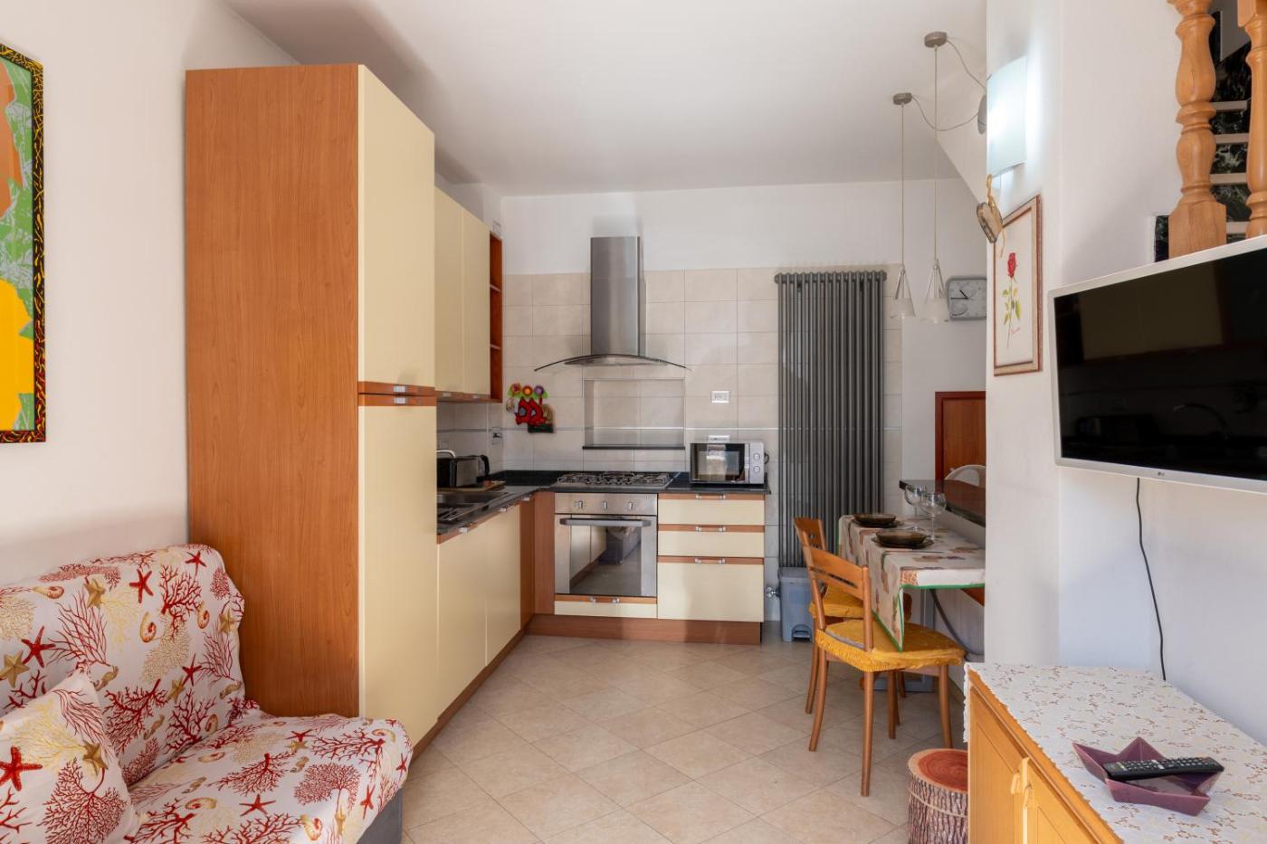 Appartamento con 1 Camera da Letto. Featuring a private entrance, this apartment consists of 1 living room, 1 separate bedroom and 1 bathroom with a shower and a bidet. Guests can make meals in the kitchen that is equipped with a stovetop, a refrigerator, kitchenware and an oven. The apartment provides a coffee machine, a seating area, a dining area, a sofa, as well as a flat-screen TV. The unit offers 2 beds.